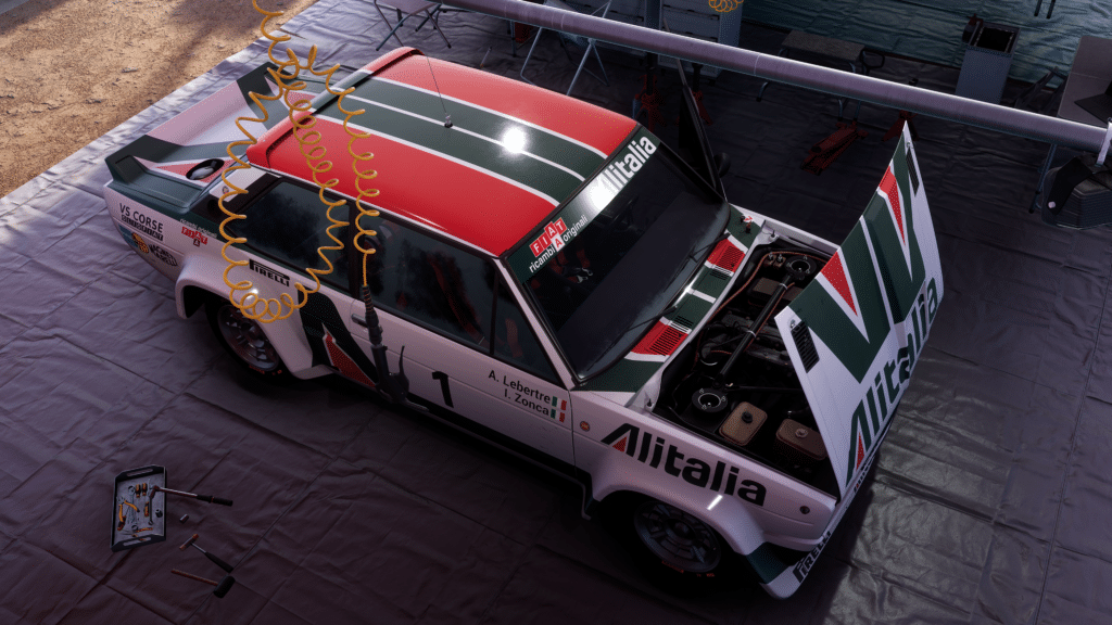 Première nouvelle qui fait plaisir pour une simu de rallye : au-delà du type de surface, la météo et la température influent directement sur le comportement de la voiture. Autrement dit, chaque spéciale est une expérience unique où les conditions vous forcent à adapter votre pilotage. D’autant qu’entre chaque spéciale, vous devrez réparer, régler et préparer la bagnole pour la suite dans un temps « limité ». Car oui, un système de dégâts visuels et physiques localisé est implémenté en jeu. Mais ce n’est pas tout !