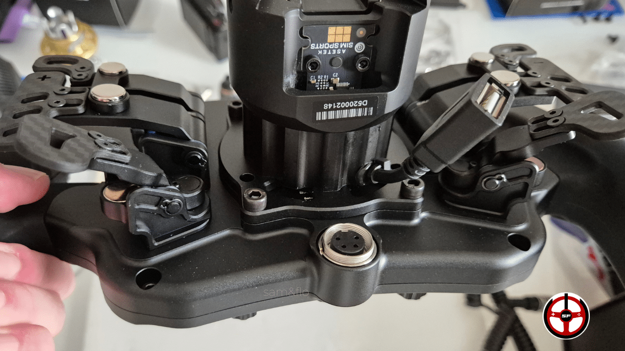 Pour installer votre Bavarian sur une base Direct Drive, vous avez 2 choix. Connecter votre volant à un Quick Release USB Passthrough (et dans ce cas-là, le volant communiquera en direct à travers la base). Soit visser un QR standard à l’arrière du volant et brancher le cordon aviation/USB-A à votre PC.
