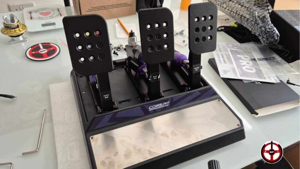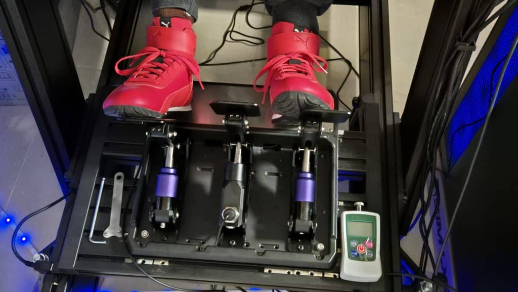 J’ai passé 64 heures sur ce pédalier installé sur un châssis en profilé alu (SimLab P1X Pro) et pour nous mettre de bonne humeur, commençons par les points positifs. L’accélérateur est super fluide et précis. L’embrayage est dans la même veine et le fait que son mouvement soit linéaire n’est pas vraiment dérangeant, surtout à ce tarif.