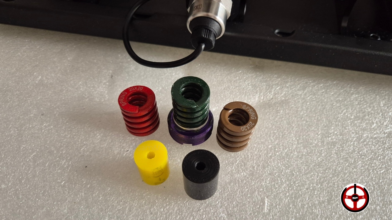 - Dureté du frein en changeant le ressort initialement installé (2 autres ressorts et 2 élastomeres fournis),
