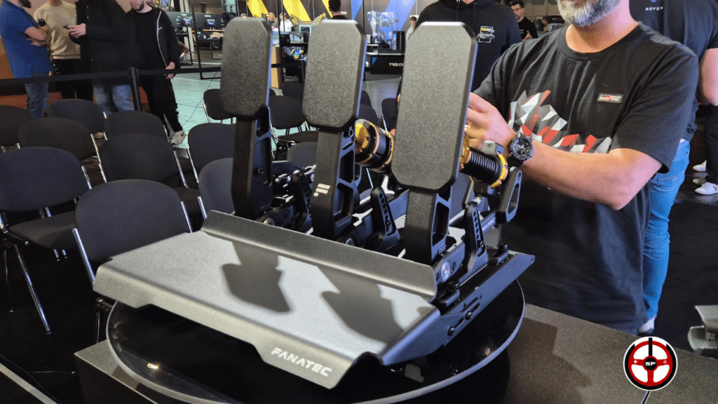 Je vous le disais en intro : ça fait littéralement des années qu’on attend un pédalier pour la catégorie podium, le haut de gamme de Fanatec. Eh bien, ça y est, c’est présenté et j’ai pu poser les pieds dessus.