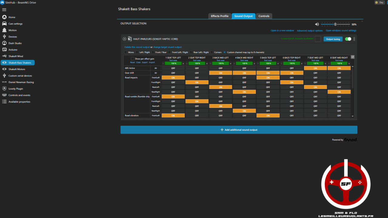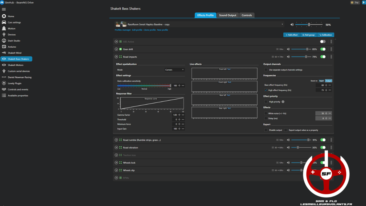 Commencer par télécharger et installer sur SimHub le profil de Shakers. Puis, téléchargez et installez les profils d’effets en jeu. Lien vers les profils !